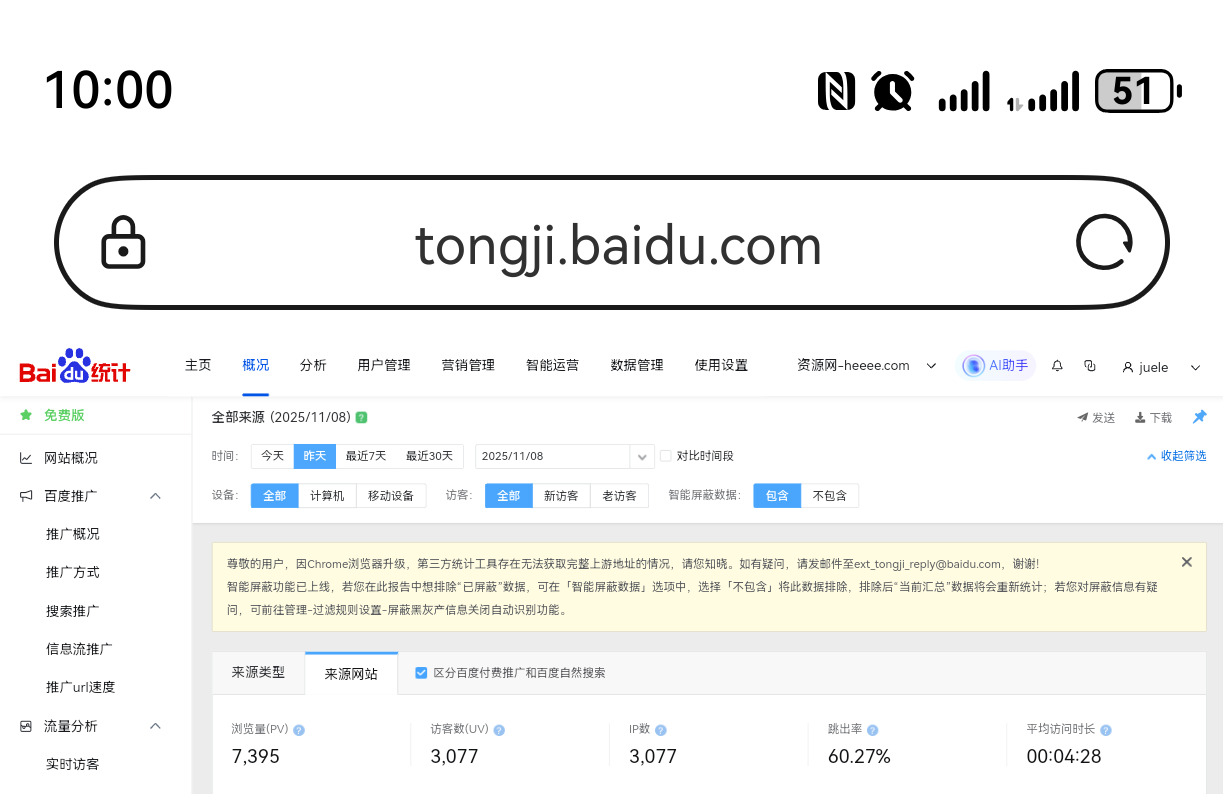 本站日访问IP在3k~6k(均为真实流量,排除爬虫)。大部分来自私域流量,极少部分来自搜索引擎。